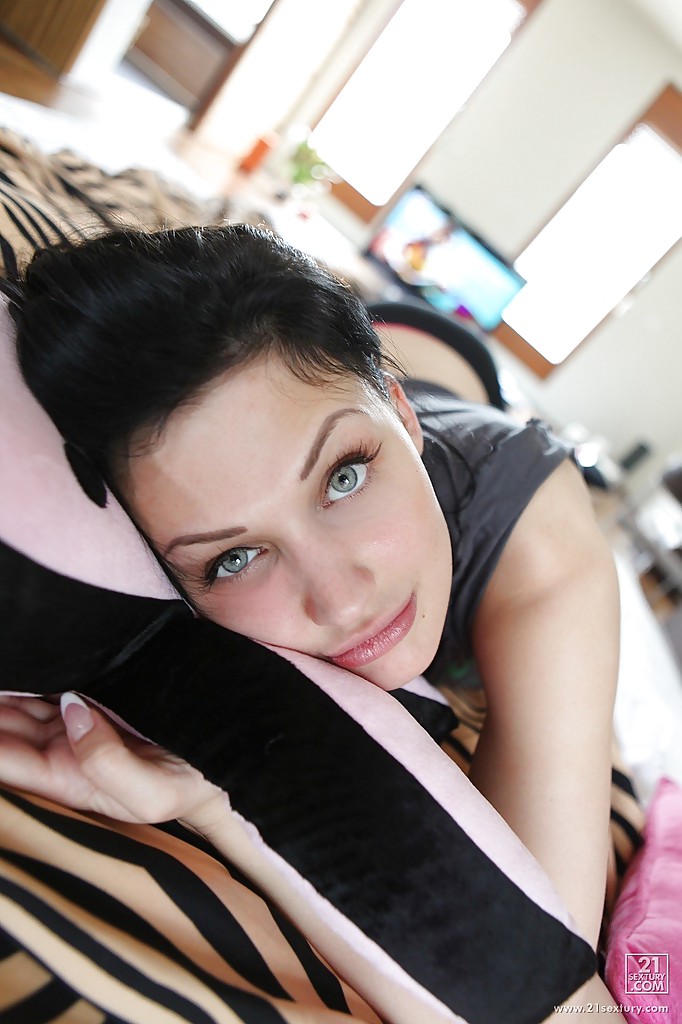 » Порнозвезда с длинными ногами Алетта Оушен лежит на своей кровати